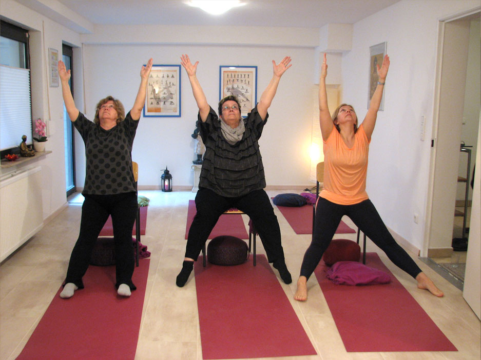 Für ältere Menschen und Senioren, die sich den Anforderungen einer normalen Yogastunde nicht mehr stellen möchten oder aus gesundheitlichen Gründen können, aber trotzdem in den Genuss der Yoga-Qualitäten kommen möchten.